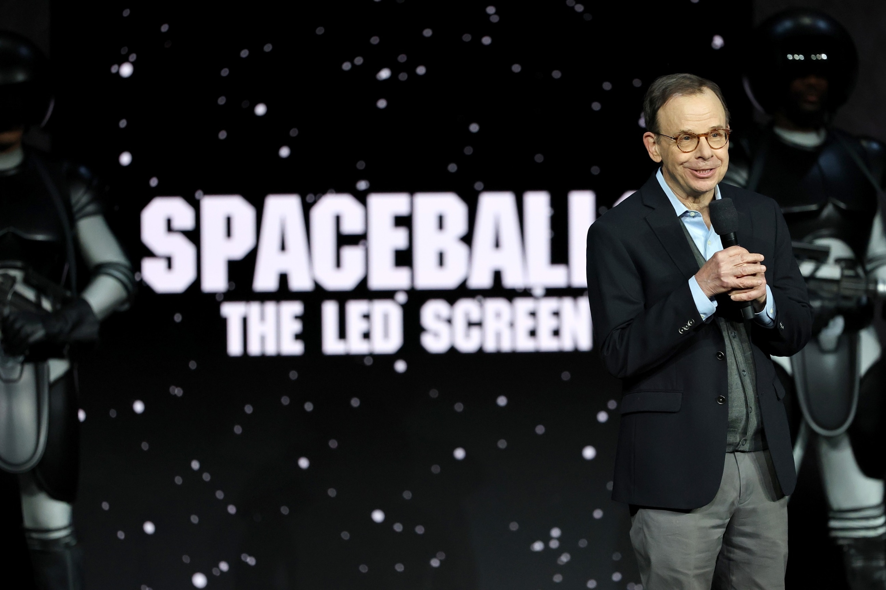 Rick Moranis promotes the upcoming film "Spaceballs 2" at the Amazon MGM Studios presentation at The Dolby Colosseum at Caesars Palace during CinemaCon, the official convention of Cinema United, on April 15, 2026 in Las Vegas, Nevada.