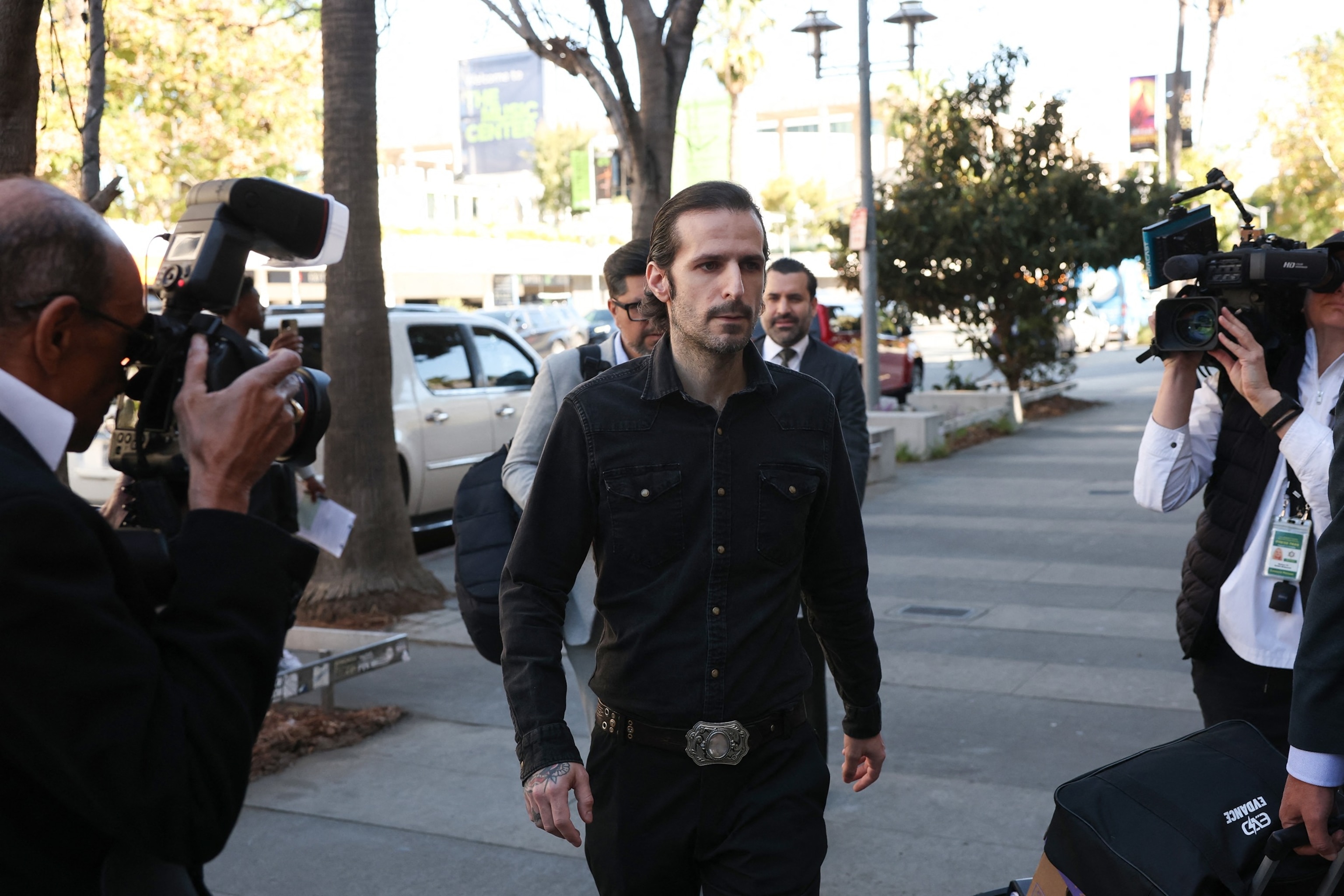 Plaintiff Tony Saxon arrives as US rapper and producer Kanye West and Australian model Bianca Censori are to testify at Los Angeles Superior Court in the civil trial related to his Malibu mansion in Los Angeles, California, on March 5, 2026.