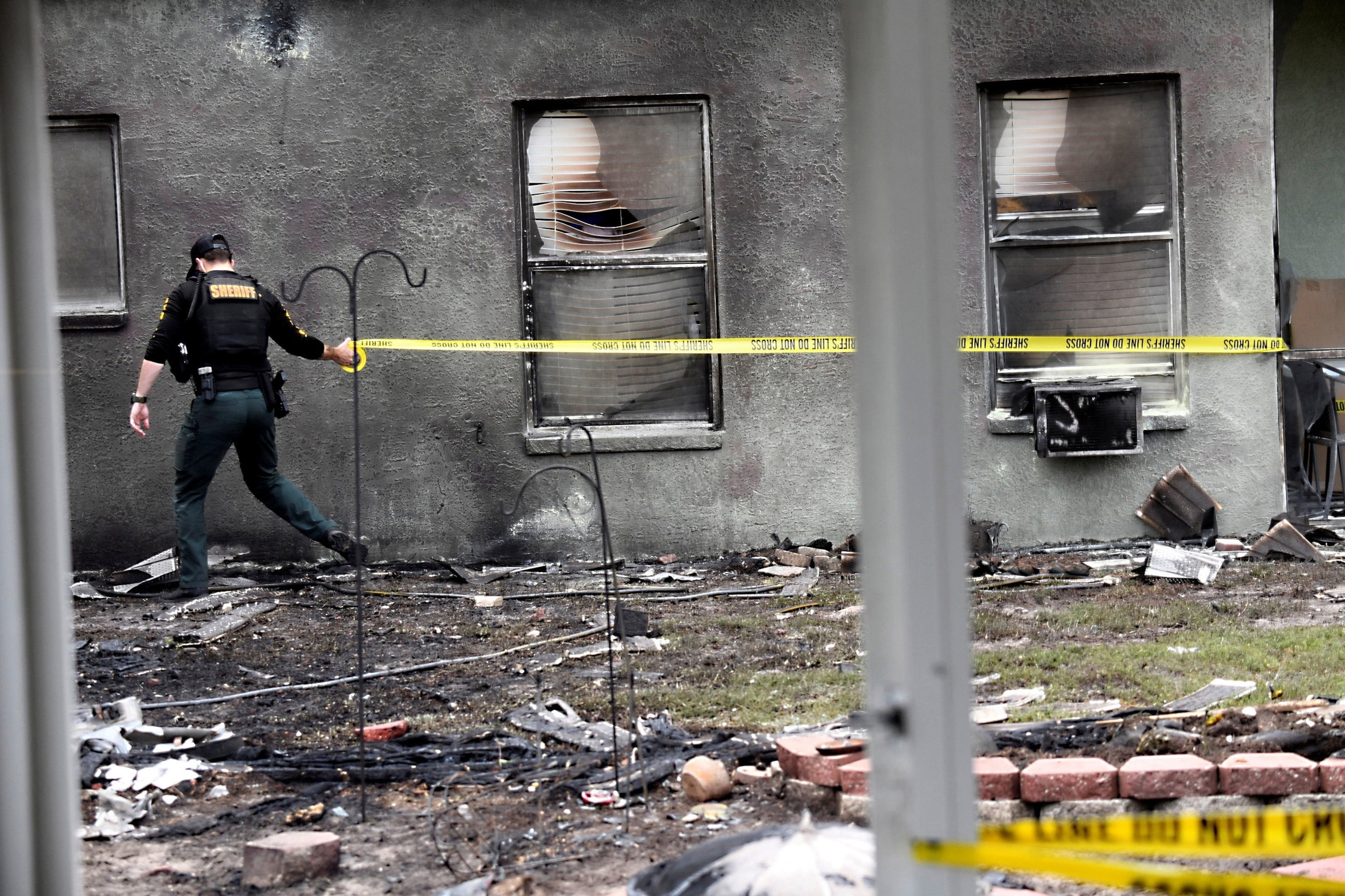 The crash shattered windows and caused a fire, which melted nearby fences.