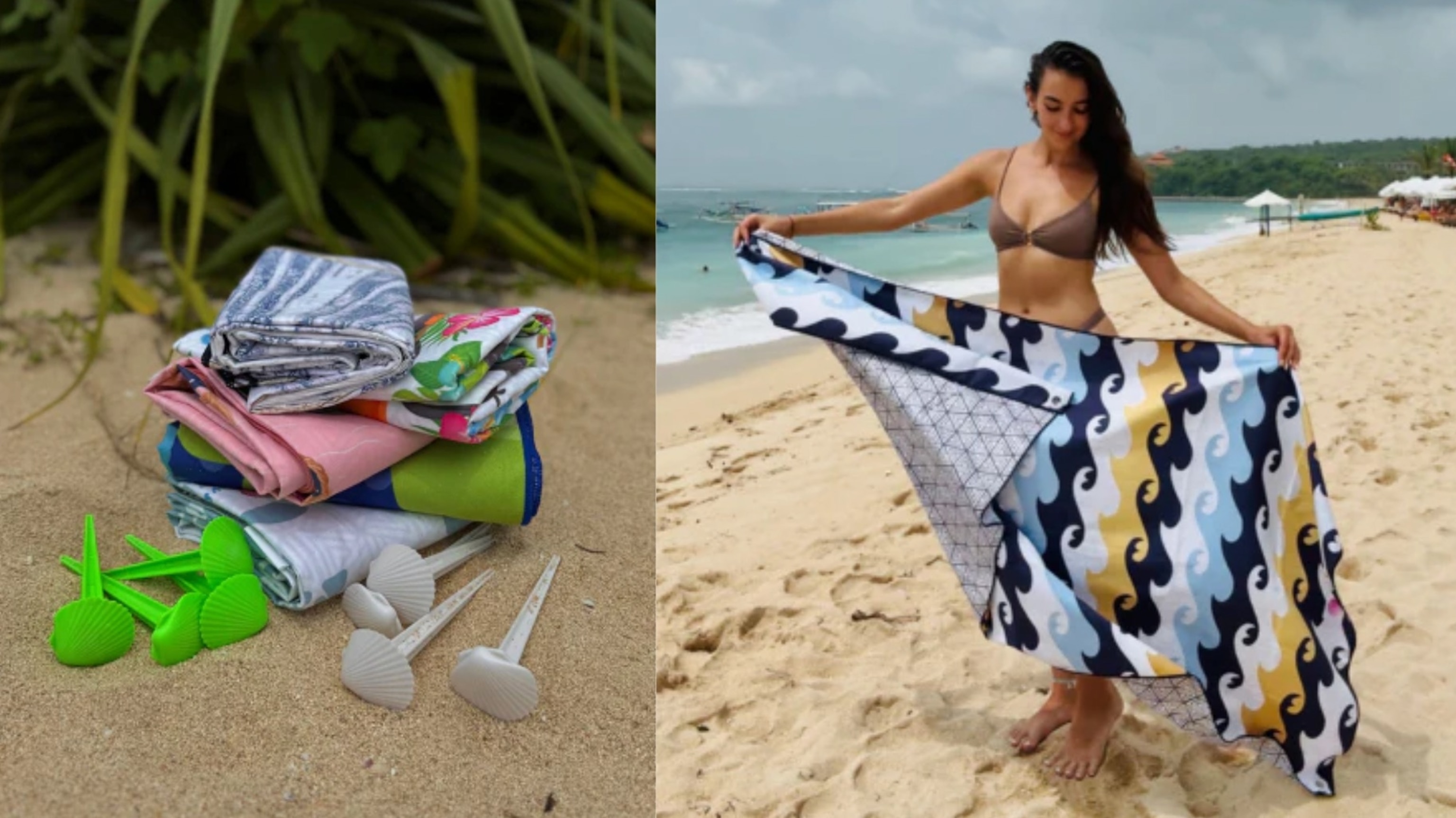 Lay N Stay: Beach Blanket with Sand Stakes