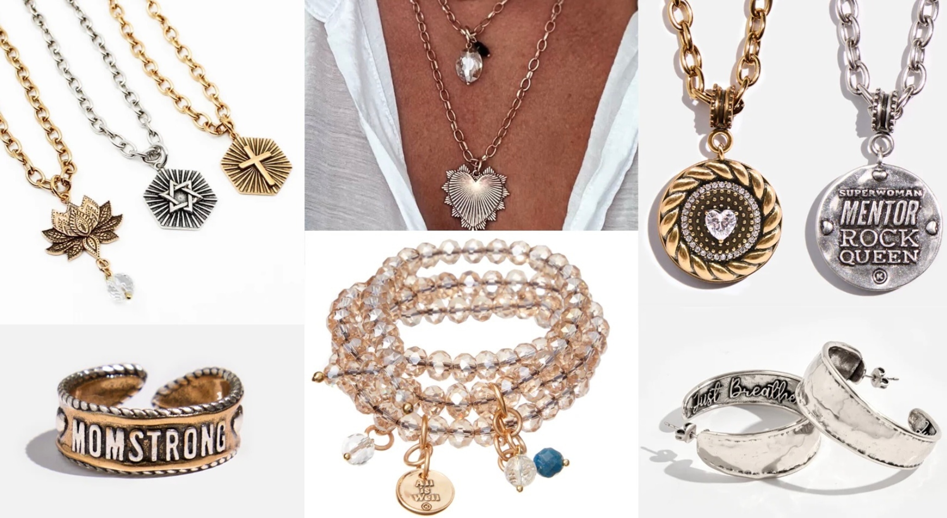 Build a standout stack of encouragement. Katia Designs jewelry is more than an accessory. Every piece carries an empowering message that turns jewelry into wearable inspiration, reminding women of their strength, confidence and worth. The patented adjustable clasp system makes every necklace versatile, easy to layer, and customizable for any look or occasion. It's not just beautiful jewelry -- it's functional design that solves a common pain point for women who want effortless layering without the hassle of tangling or fixed lengths. Choose from beautiful wrap styles, pendant designs, layering bundles and more.