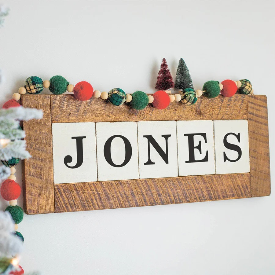 Add rich, rustic elegance to any space. Rustic Marlin’s Classic Sign is the signature item that launched the New England family-owned brand. This sign features wooden block tiles within a solid, wooden frame. Each sign is made with uppercase letters, can be personalized with up to 12 characters and includes two hooks on the back for easy wall-hanging. The wooden serving trays highlight handcrafted vintage style in a versatile size for any house. Choose from three designs, including one just for Santa, all personalized to celebrate your family. Free shipping!