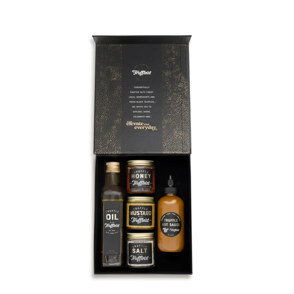 Indulge in the most delicious truffle condiments that celebrate flavor all day, everyday. The Truffleist specializes in tempting pantry essentials and chic, giftable treats. From oil and sauce to honey, mustard and seasoning, this assortment is made for the truffle lover. From simple stocking stuffers to luxurious gift sets, there are options to wow your favorite hostess, stock your cabinets and serve at gatherings to elevate any meal.