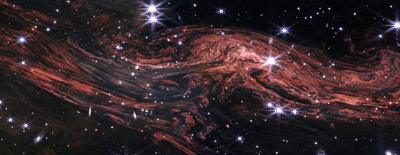 JWST uncovered four coiled dust shells swirling around the chaotic triple star system Apep. These serpentine patterns, ejected over centuries by two massive Wolf-Rayet stars and shaped by a third companion, glow in mid-infrared light. This first-of-its-kind capture exposes the violent winds of dying giants, a rare laboratory for understanding how heavy elements seed future worlds.