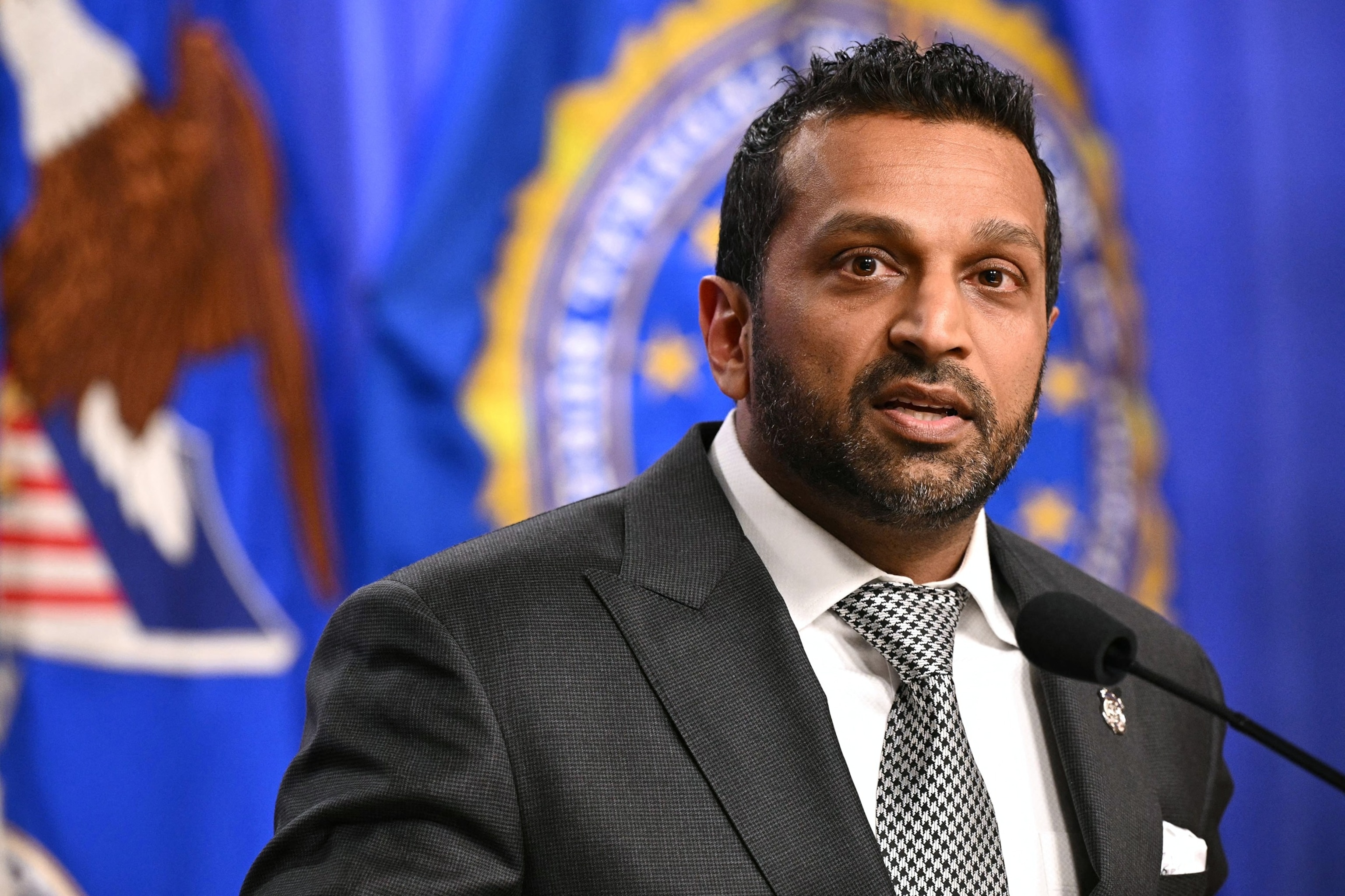 FBI Director Kash Patel speaks during a press conference at the Department of Justice in Washington, D.C., on April 21, 2026.