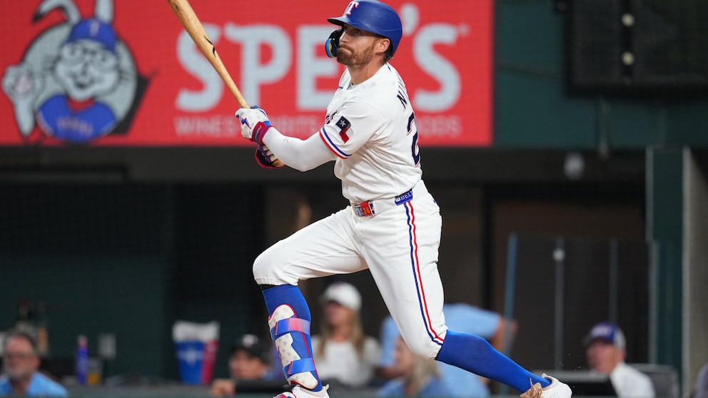 The Rangers answered with two runs in the third on Brandon Nimmo’s bases-loaded sacrifice fly and Seager’s two-out single to score Evan Carter.