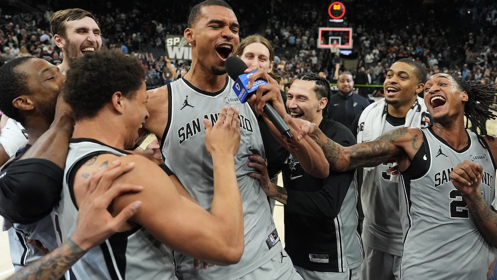 The core then: Gregg Popovich as coach, leading names like Tim Duncan, Tony Parker and Manu Ginobili. The core now: Mitch Johnson as coach, leading names like Stephon Castle, De’Aaron Fox and Wembanyama — who seems to make all things possible.