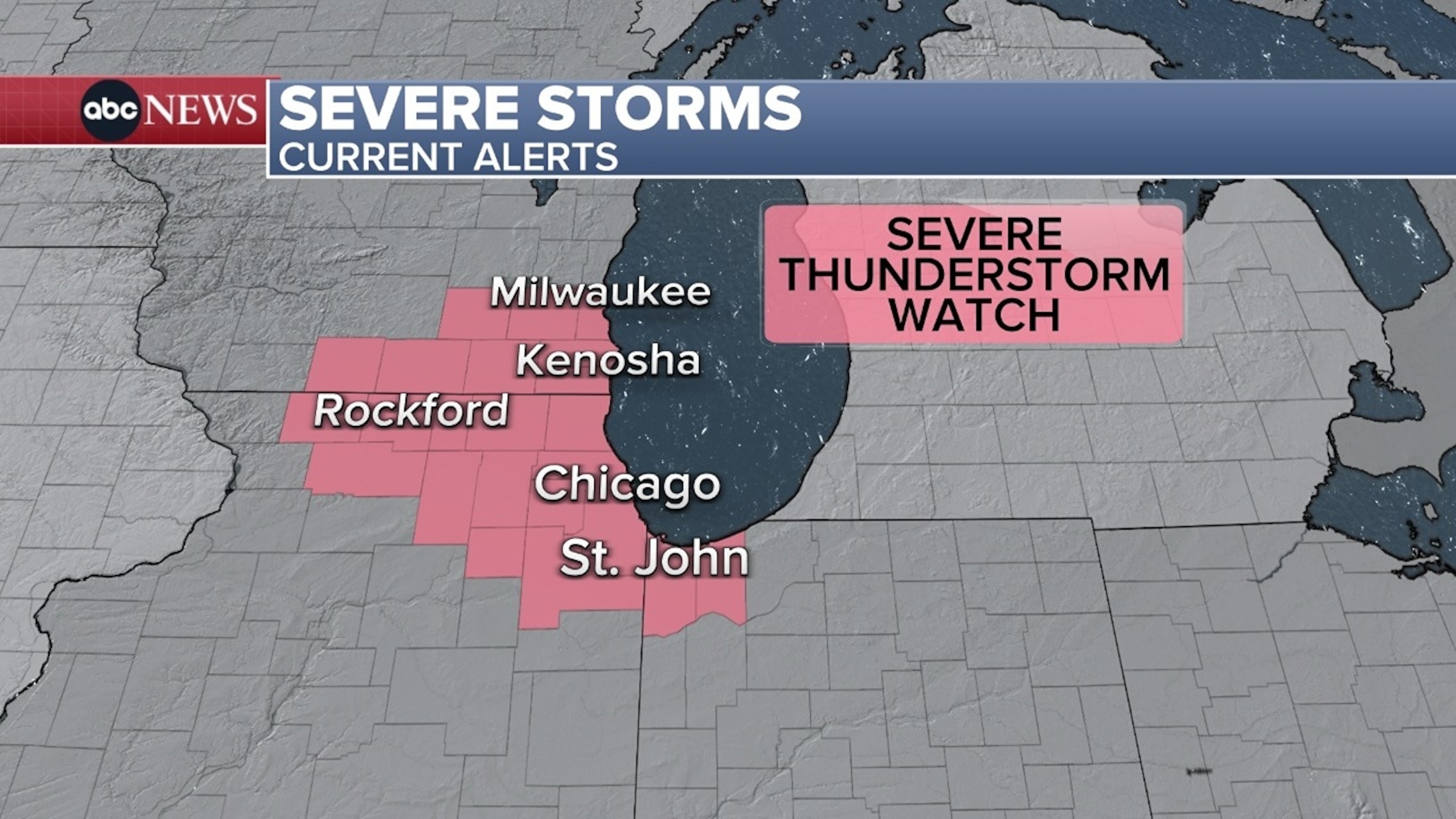 Nearly 12 million people across portions of southeastern Wisconsin and northern Illinois are under a Severe Thunderstorm Watch until 7 p.m. local time on Saturday. Wind gusts could reach up to 70 mph and scattered hail the size of 1.5 inches in diameter is also possible.