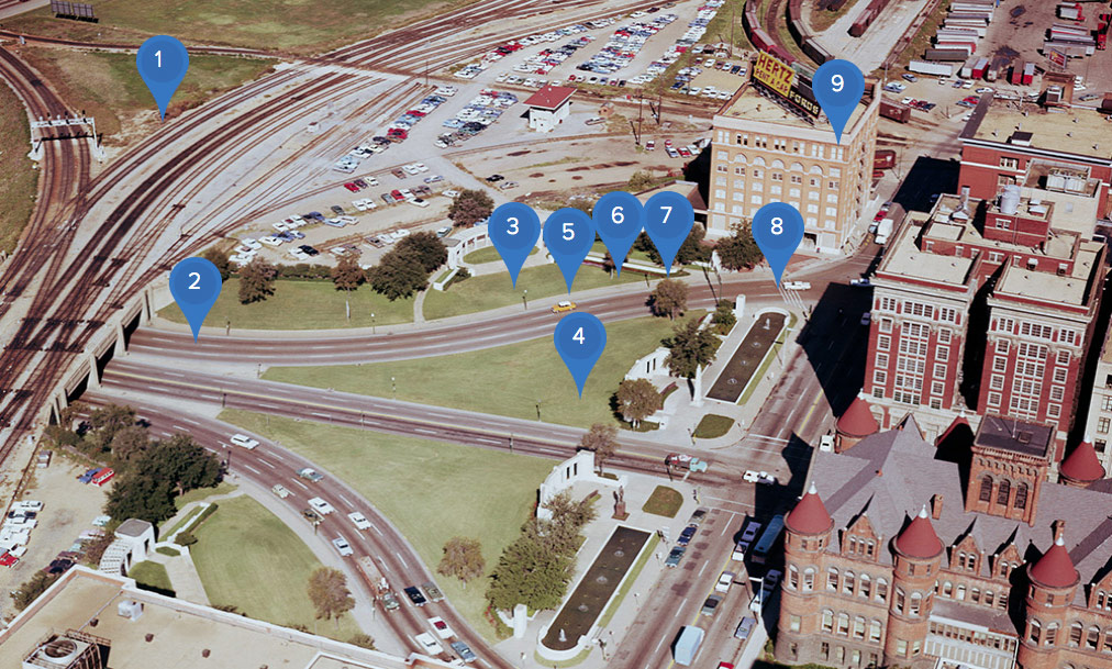 Dealey Plaza is the civic center of Dallas and was known as the “front door” to the city prior to Kennedy’s arrival in 1963. The presidential motorcade was driving through the crowd-lined plaza when shots were fired; it has since become a National Historic Landmark.