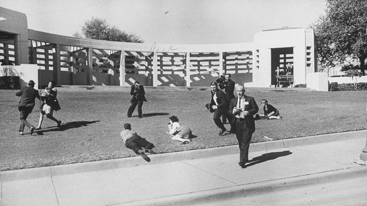 As shots rang out in Dealey Plaza, a reporter riding in the motorcade filed a dispatch saying police thought the gunfire came from the right rear of the president’s limo, “probably from a grassy knoll to which police rushed, according to a timeline of news coverage compiled by the Sixth Floor Museum, now housed in the Texas School Book Depository. It was the first time the phrase “grassy knoll” was used in connection to the shooting, according to the museum.