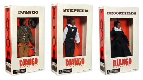 The 10-doll collection, sold through Amazon, includes figures for Jamie Foxx's Django, a freed-slave-turned-bounty-hunter, and his on-screen wife Broomhilda, played by Kerry Washington. There are also figures for the Mississippi plantation owner, played by Leonardo DiCaprio, and the characters played by Christoph Waltz and Samuel L. Jackson.