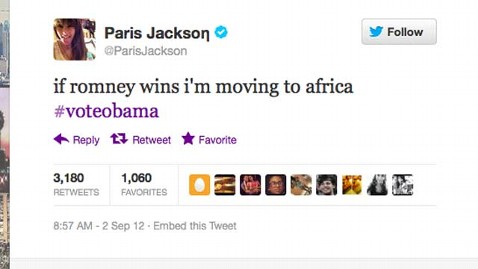 Paris Jackson Tweets She'll 'Move To Africa' If Romney Wins