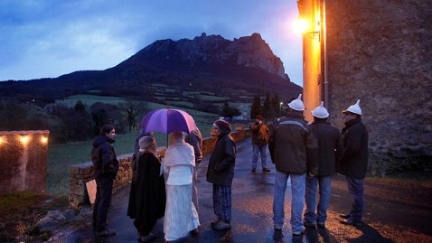 People gather at dusk in Bugarach, France a small village in the foothills of the Pyrenees. The mountain town is rumored to be a place of protection should Doomsday come.