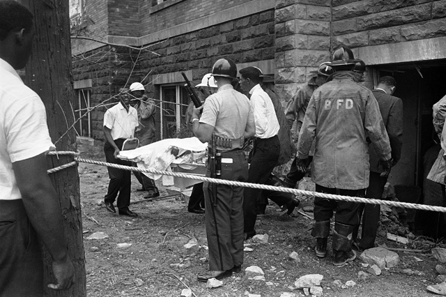 The bomb, composed of dynamite and a timer, was planted beneath the front steps of the church, outside a basement room in which 26 children attended a Sunday school sermon. (Image Credit: AP Photo)