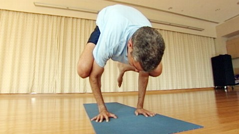 Dr. Besser does the crow yoga pose to prove you don't have to be flexible to do yoga.
