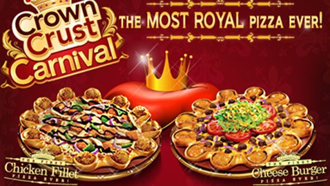 Pizza Hut's Crown Crust Pizza has mini cheese burgers nestled in its crust. It's topped with meat, lettuce and tomatoes and drizzled with a signature dressing.