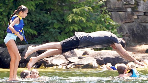 Romney's Vacation Resumes with Dive into Lake Hours After Jobs Report
