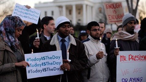 Supporters of gun control gather on Pennsylvania Avenue in front of the White House in Washington, Friday, Dec. 14, 2012, during a vigil for the victims of the shooting at Sandy Hook Elementary School in Newtown, Ct., and to call on President Obama to pass strong gun control laws. (Charles Dharapak/AP Photo)