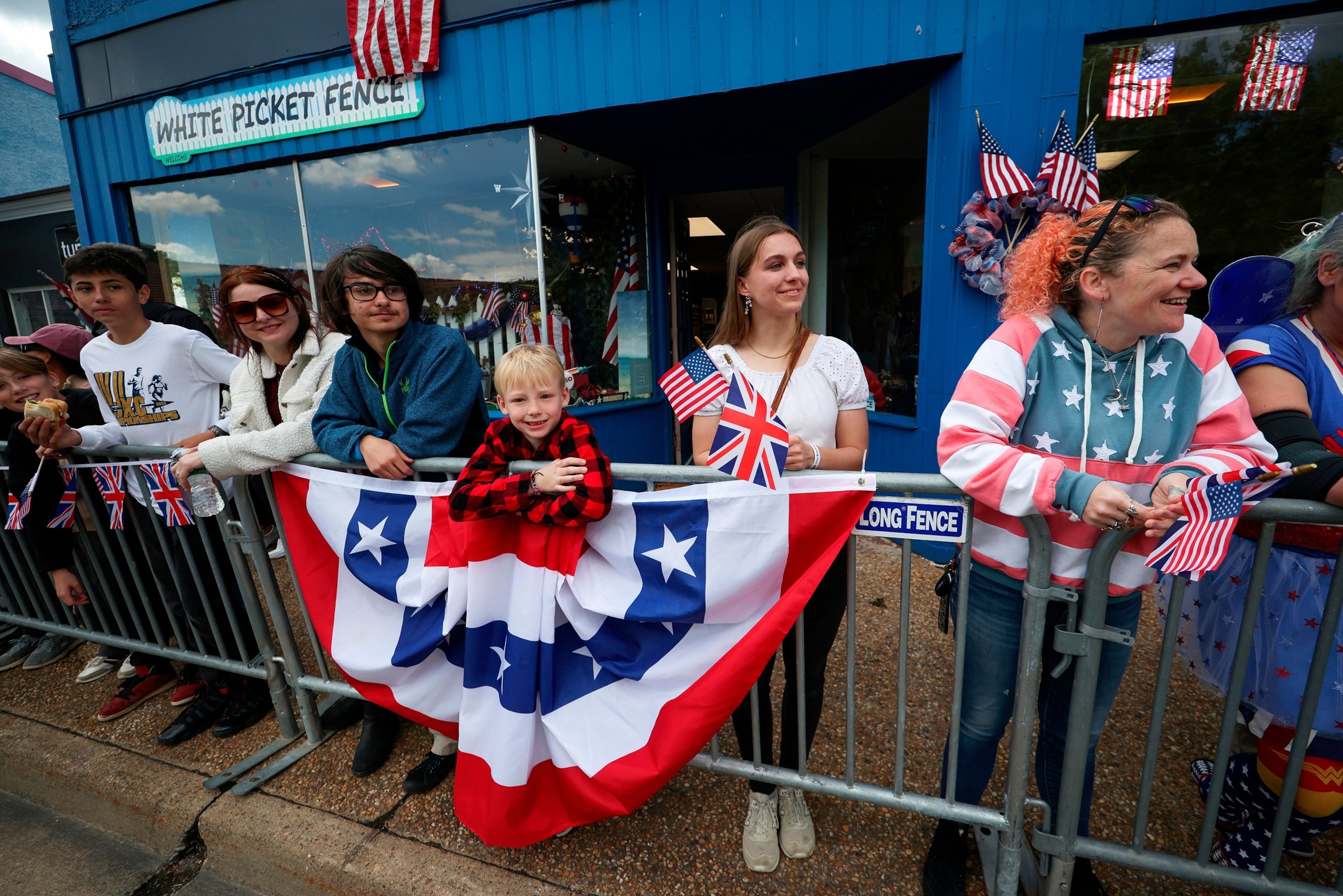 Locals decked out in red, white and blue also lined the town's streets to get a glimpse of Charles and Camilla.