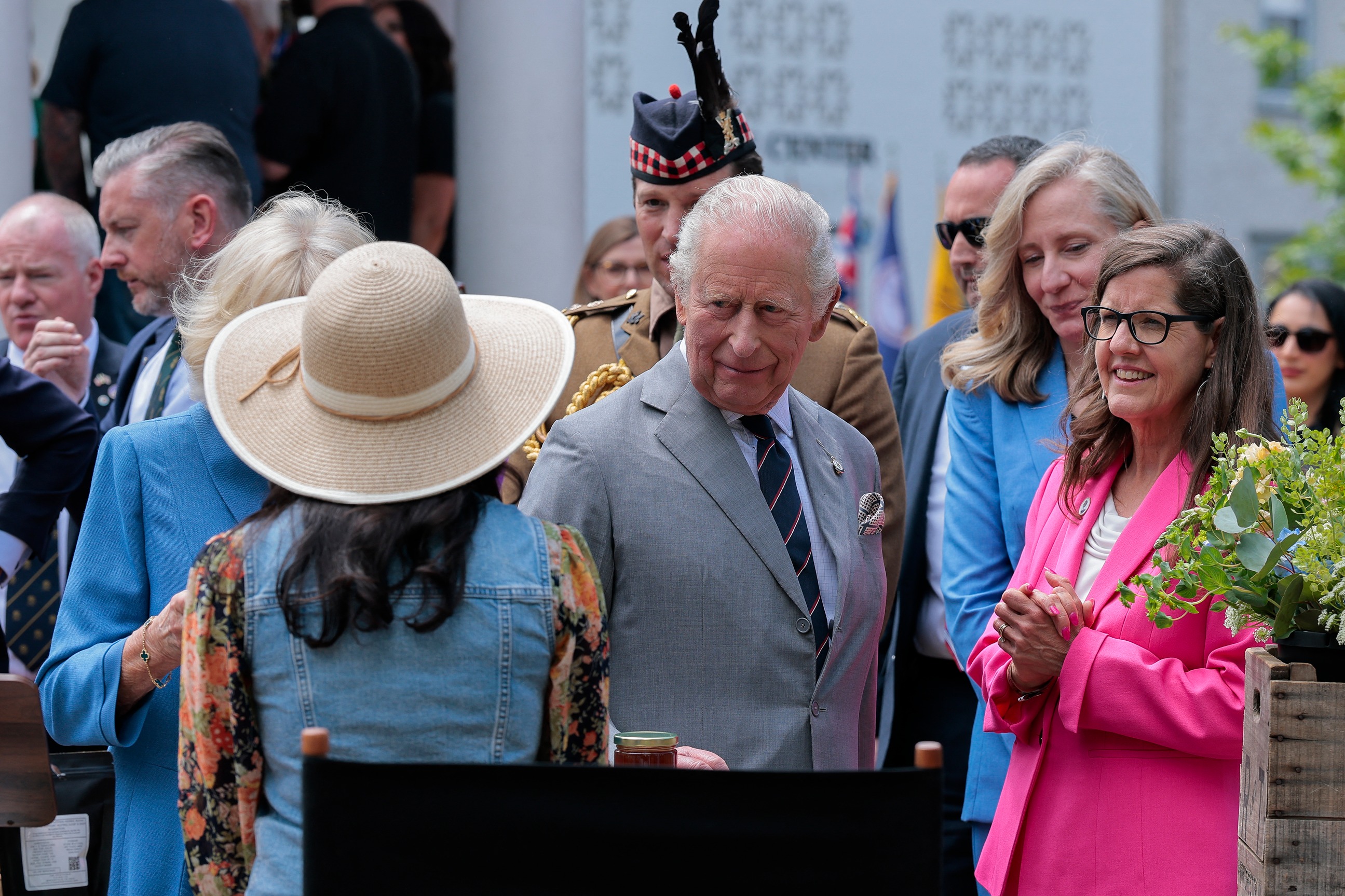 The king and queen went on to visit the Canadian Cross of Sacrifice, "a monument to the more than 40,000 US citizens and residents who volunteered for the Canadian Expeditionary Force and lost their lives in the First World War," according to the release.
