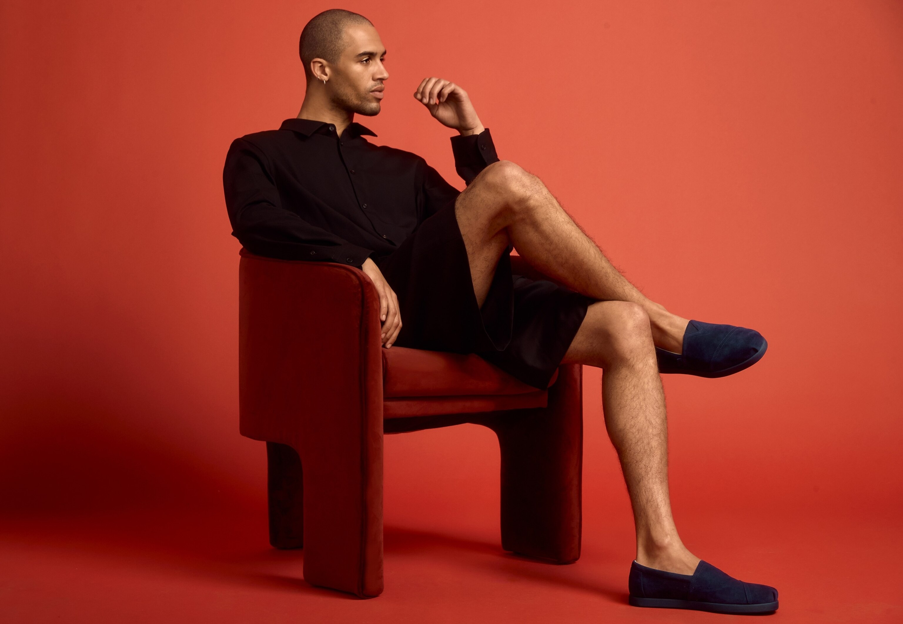 She said the red TOMS in this collection are great for this purpose, since they add a pop of color to anything.