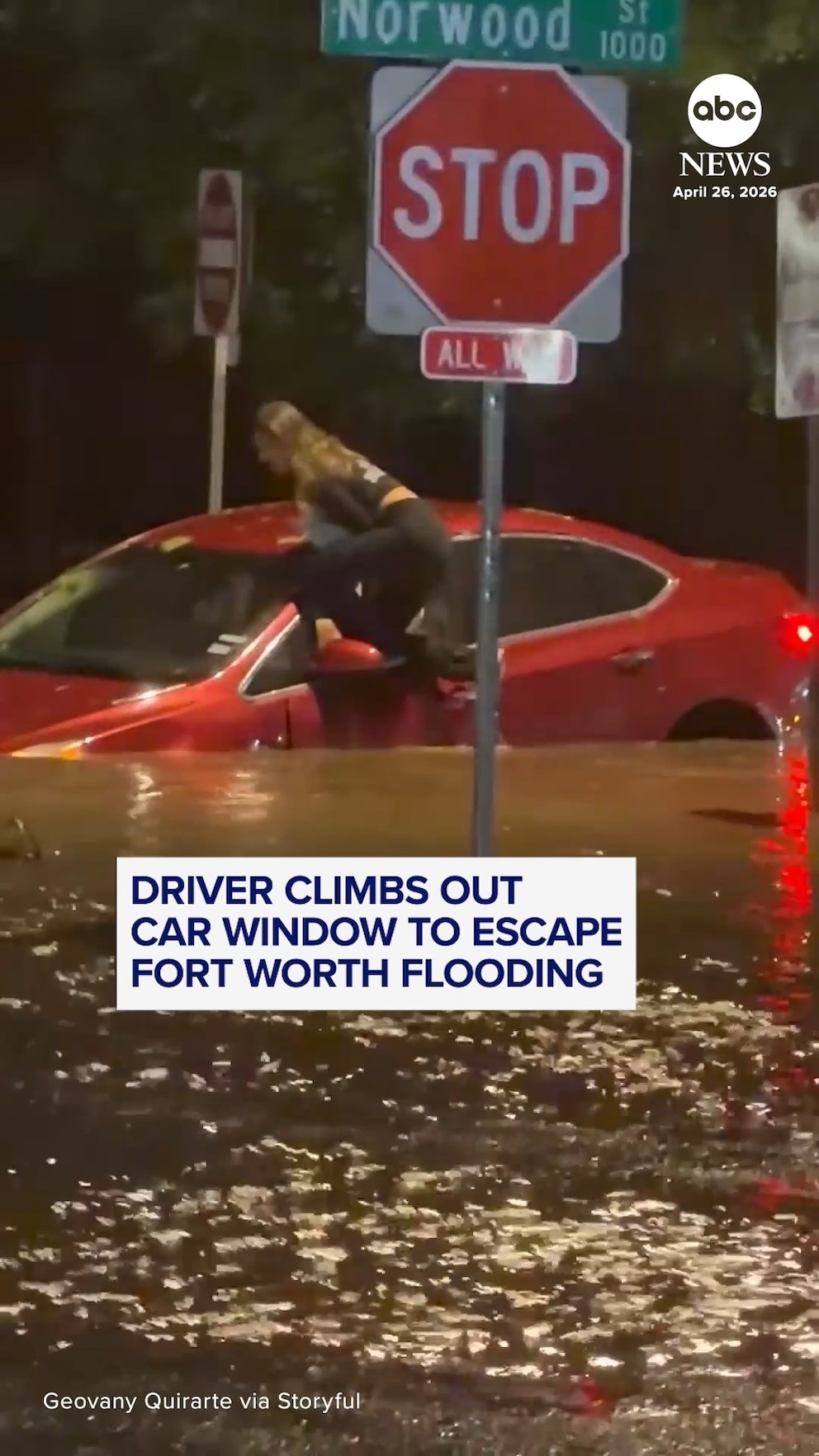 Driver climbs out car window to escape Fort Worth flooding