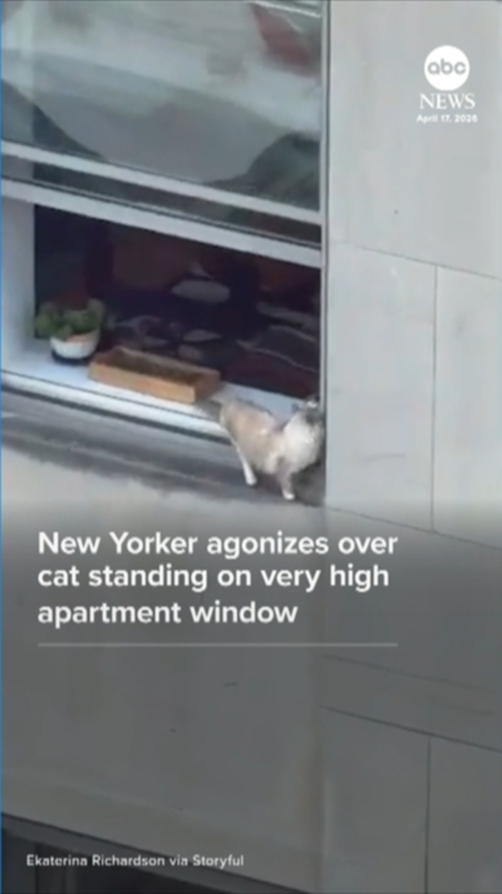 Daredevil cat explores terrifyingly high windowsill of NYC skyscraper