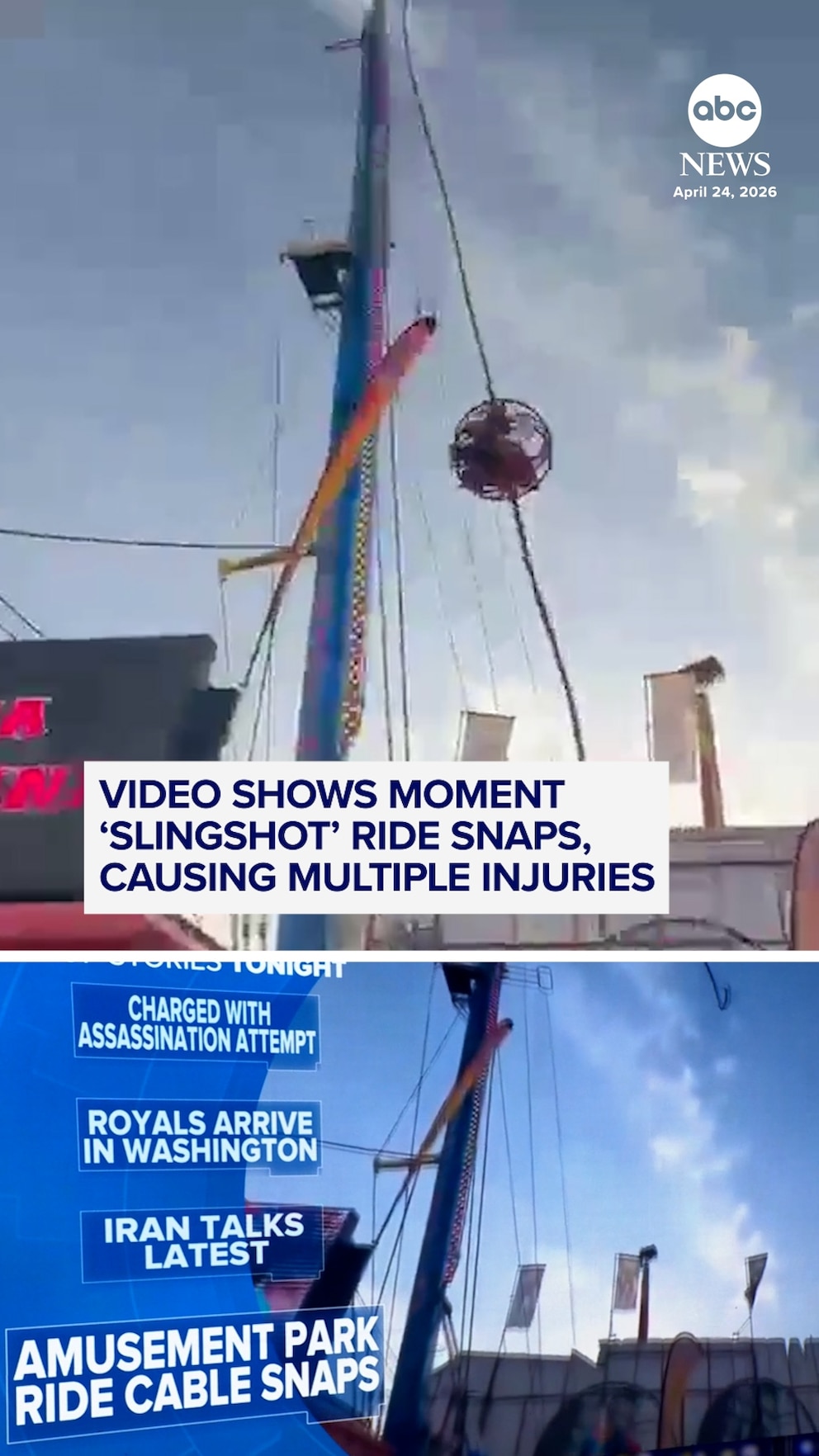 Video shows moment ‘slingshot’ ride snaps, causing multiple injuries