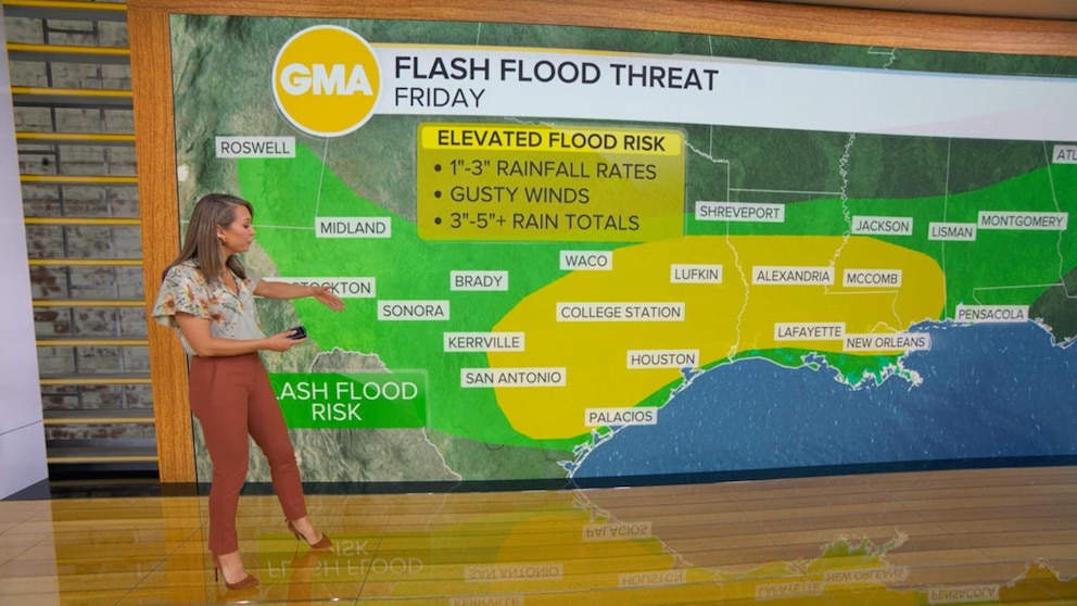 ABC News' Chief Meteorologist Ginger Zee reports on severe weather threats across the South bringing a flood risk.
