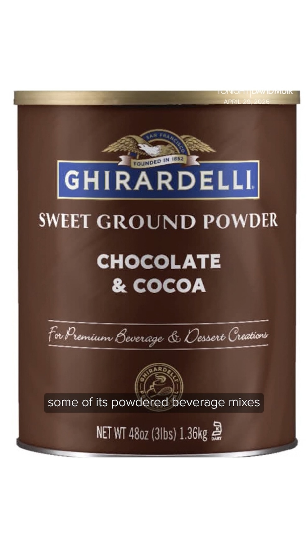 Ghirardelli recalls some powder beverage mixes over possible salmonella contamination